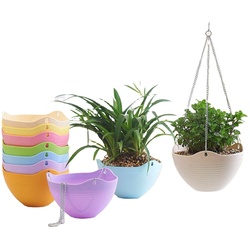Macetas colgantes de ratán redondas de plástico para interior y exterior, macetas de flores con cadena de Metal