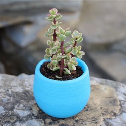 Vasos pequenos coloridos para plantas suculentas em vários tamanhos com padrões de pedra